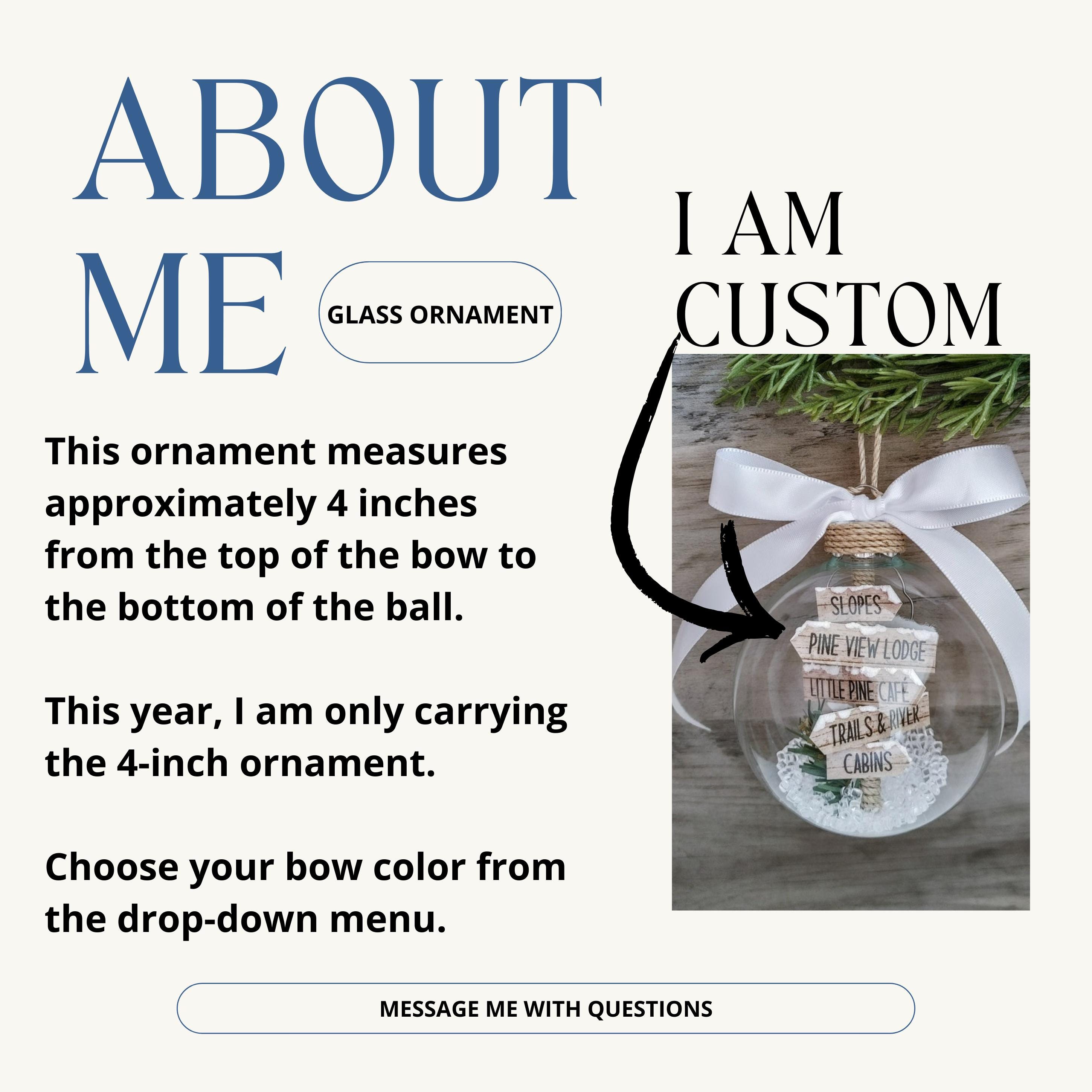 This PERSONALIZED snow ornament is showing you which way to hit the slopes. Handmade. There are many steps to making your custom ornament, from wrapping the pole in twine to attaching the bow on top! I take care in each ornament and pay special attention to details. If you love the mountains, skiing, snow days or know someone who does, this ornament is a must.