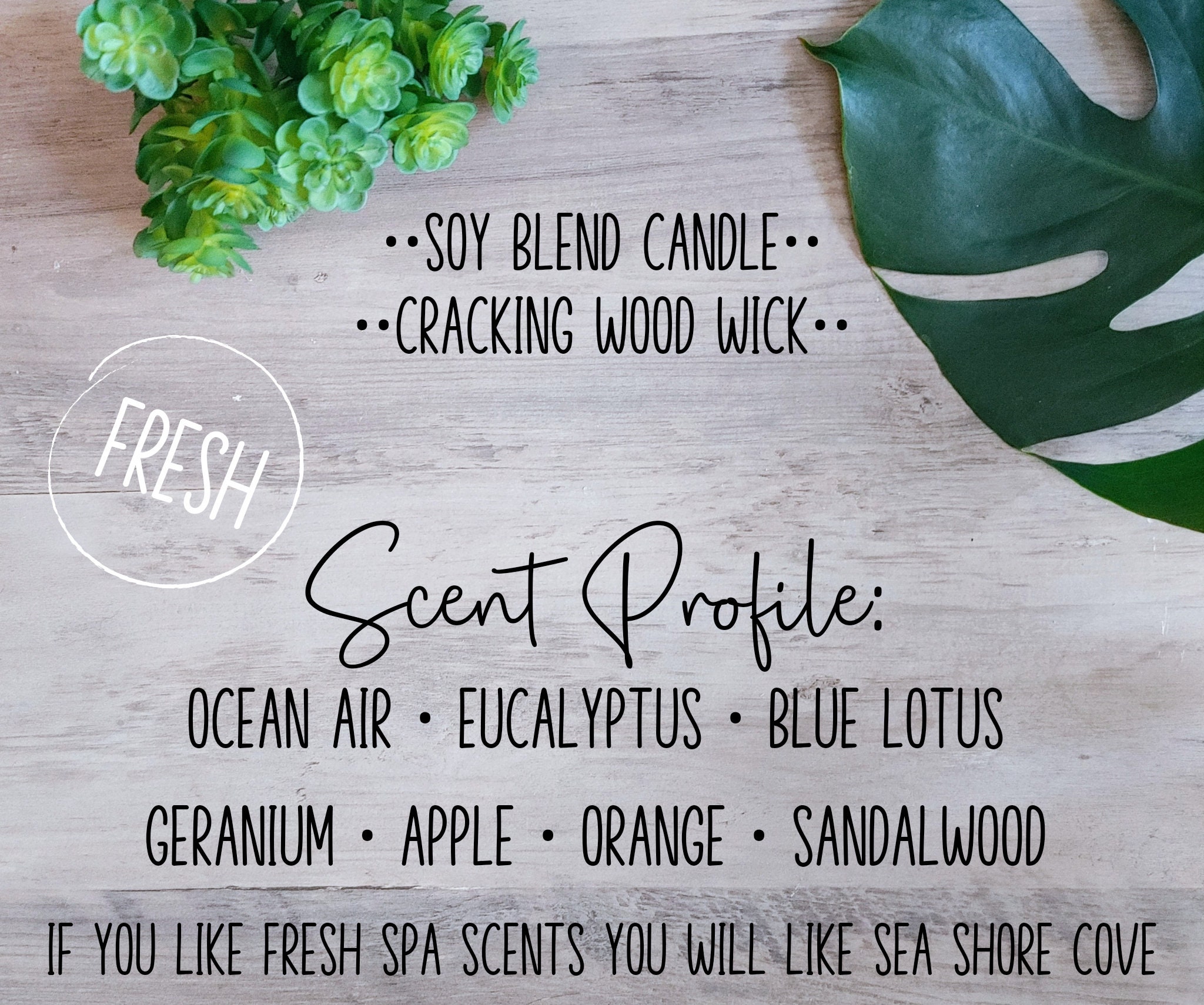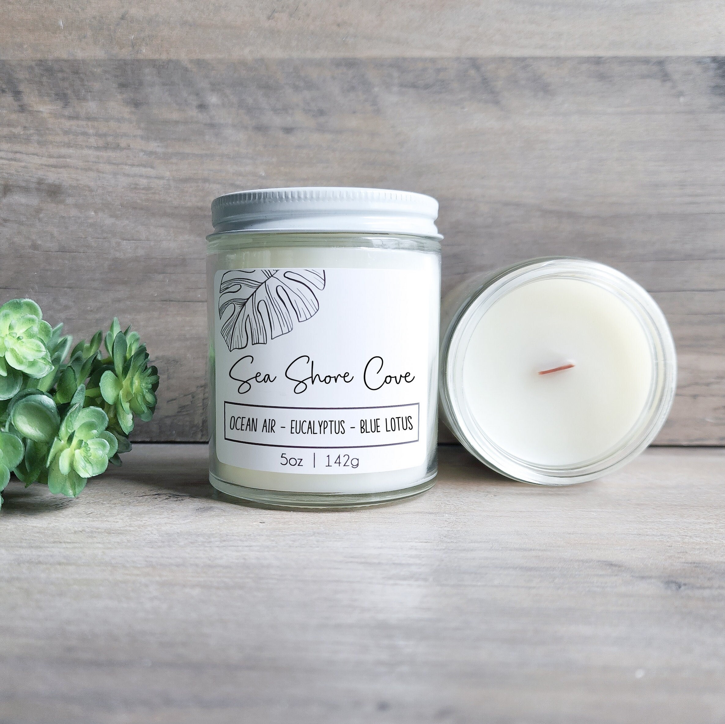 If you love a fresh herbal beach scent you will love this candle. A minimalistic designed candle that will give you summer vibes. Our candles are custom blended scents that you can enjoy or give as a gift. This soy blend wax candle has a crackling wood wick. Simple metal screw lid style jar can fit into any home décor. Give one as a gift or keep for yourself. This is the perfect jar to reuse after you burn your candle! Use in the bathroom, on a nightstand, or on a shelf in the living room for added texture and design.