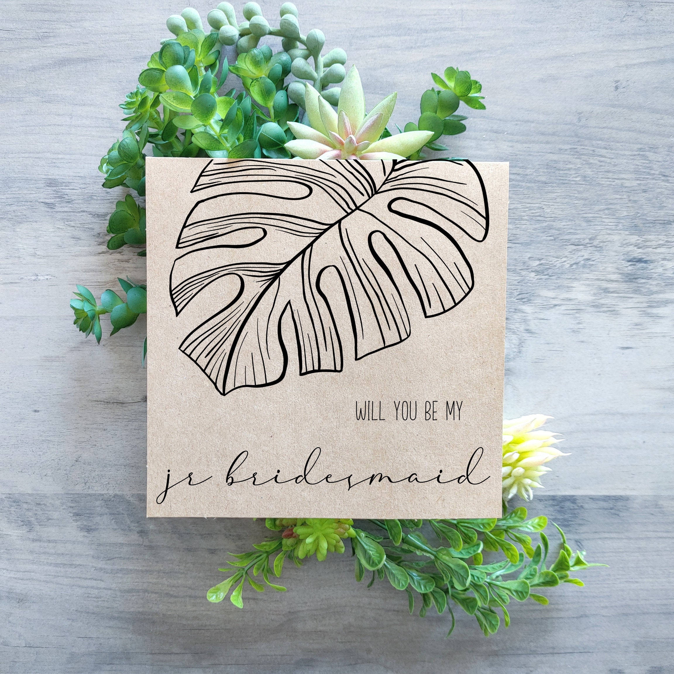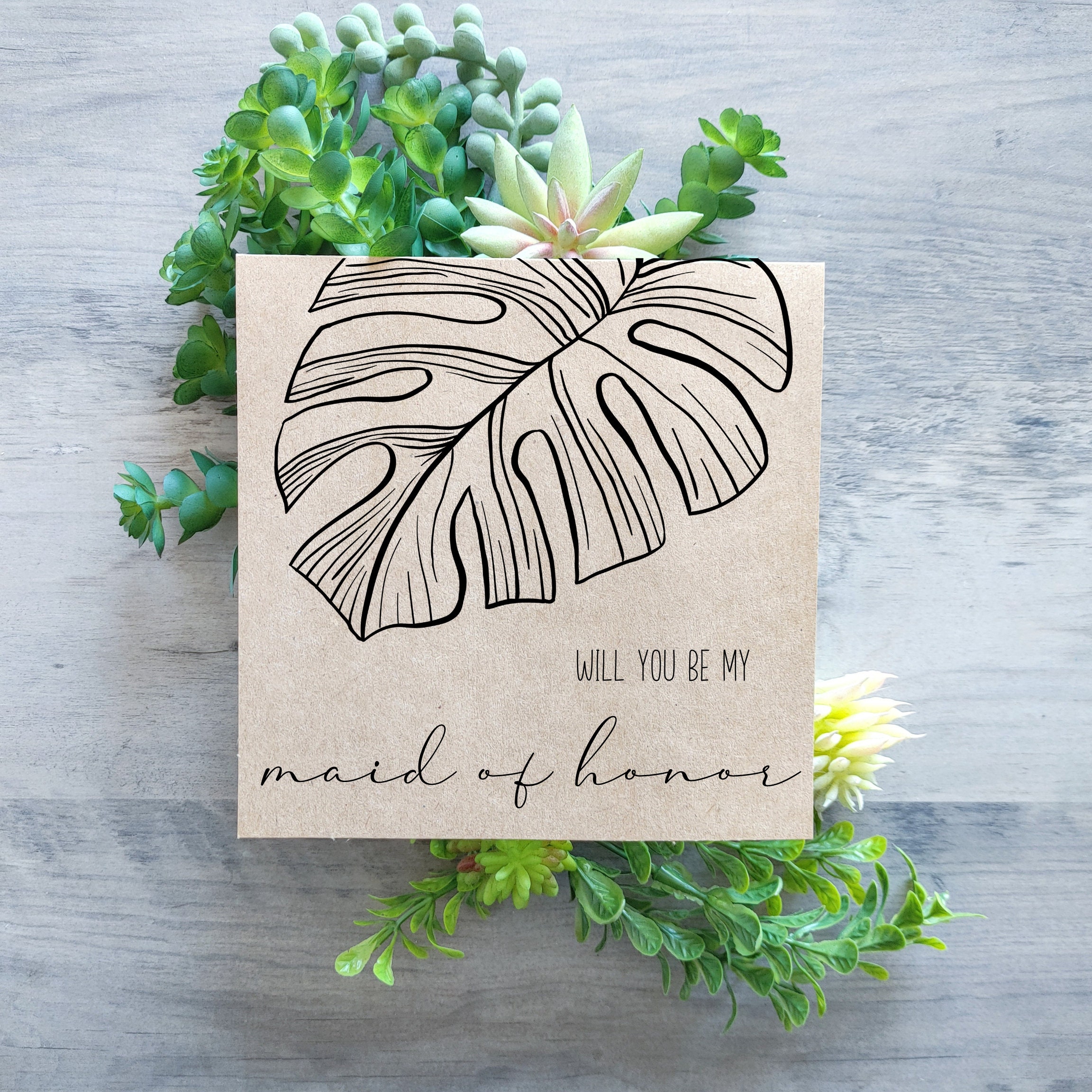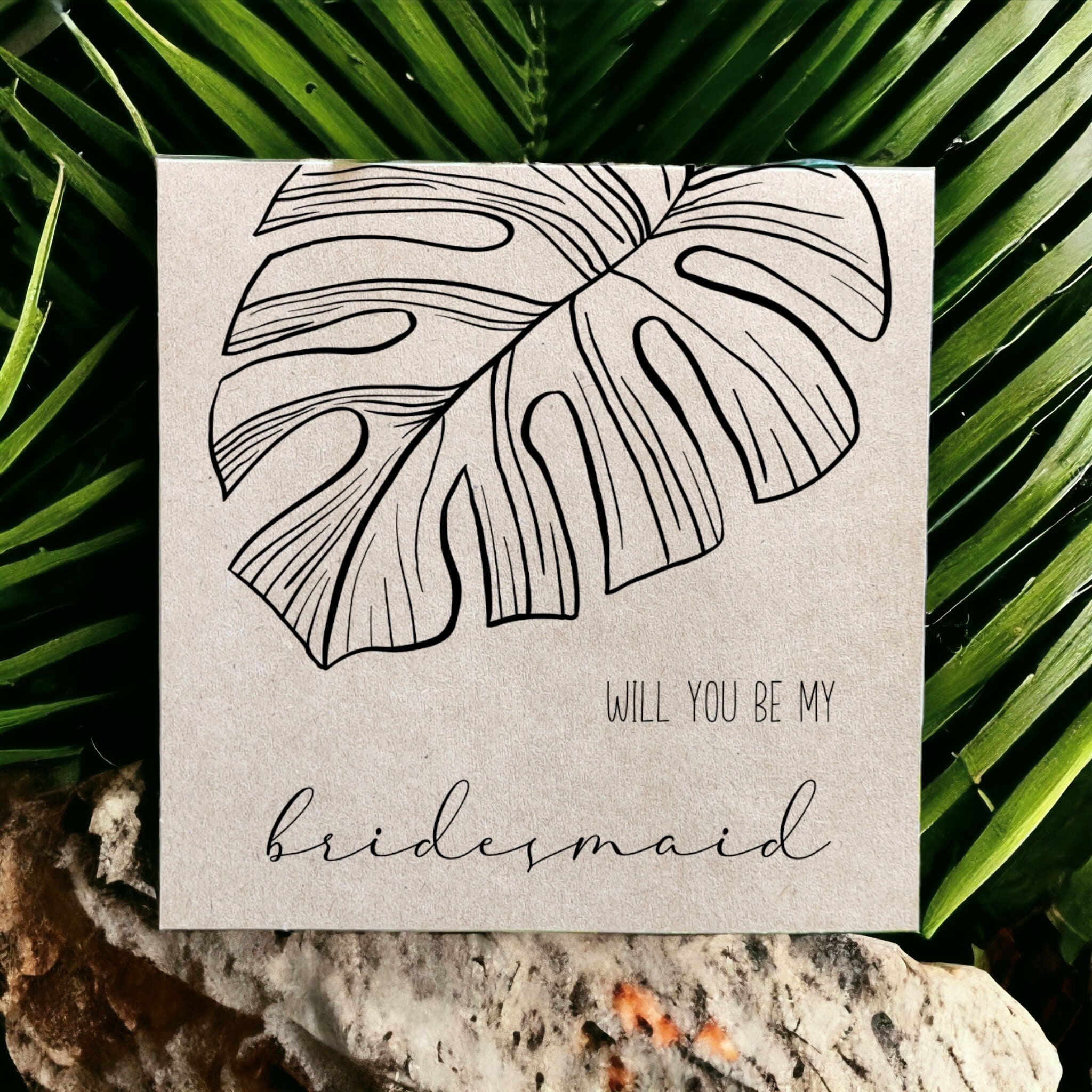 Bridesmaid proposals have become the trend. This cute monstera leaf card is tropical, trendy, and perfect card to give to your future bridal party. This beach tropical card is made of kraft color card stock. It is the perfect way to ask your friends and family that important question.