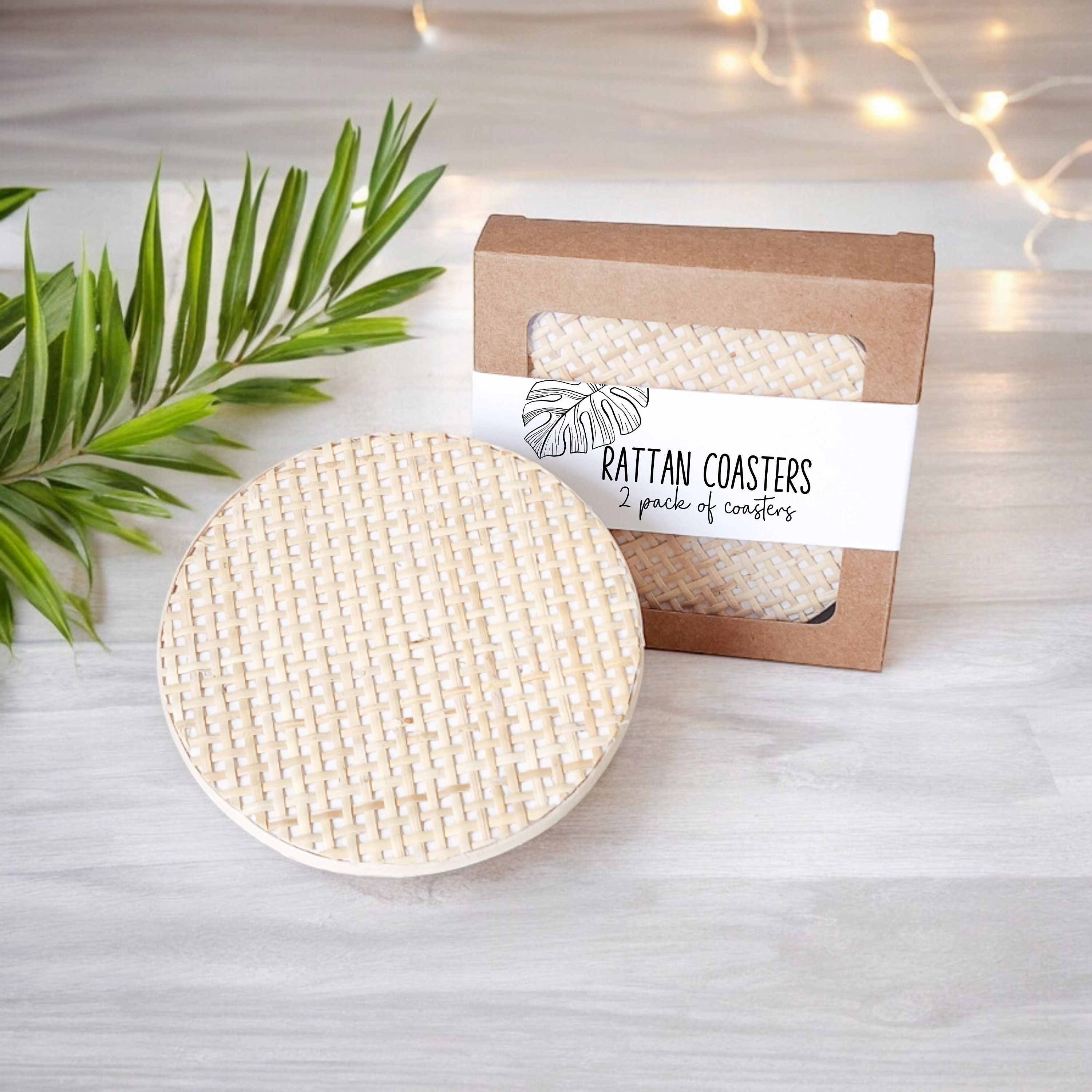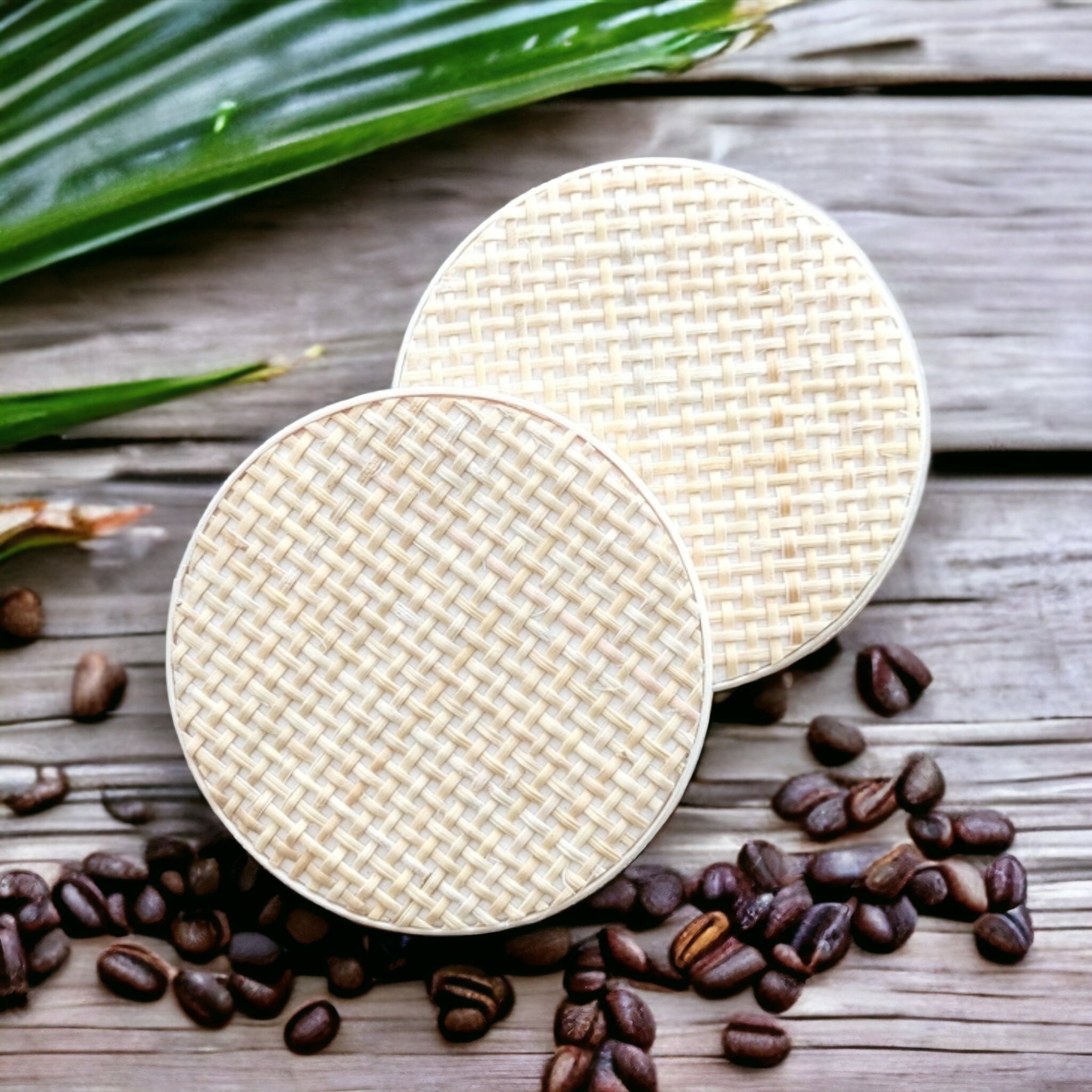 · Set of 2 or more Coastal rattan style coasters
