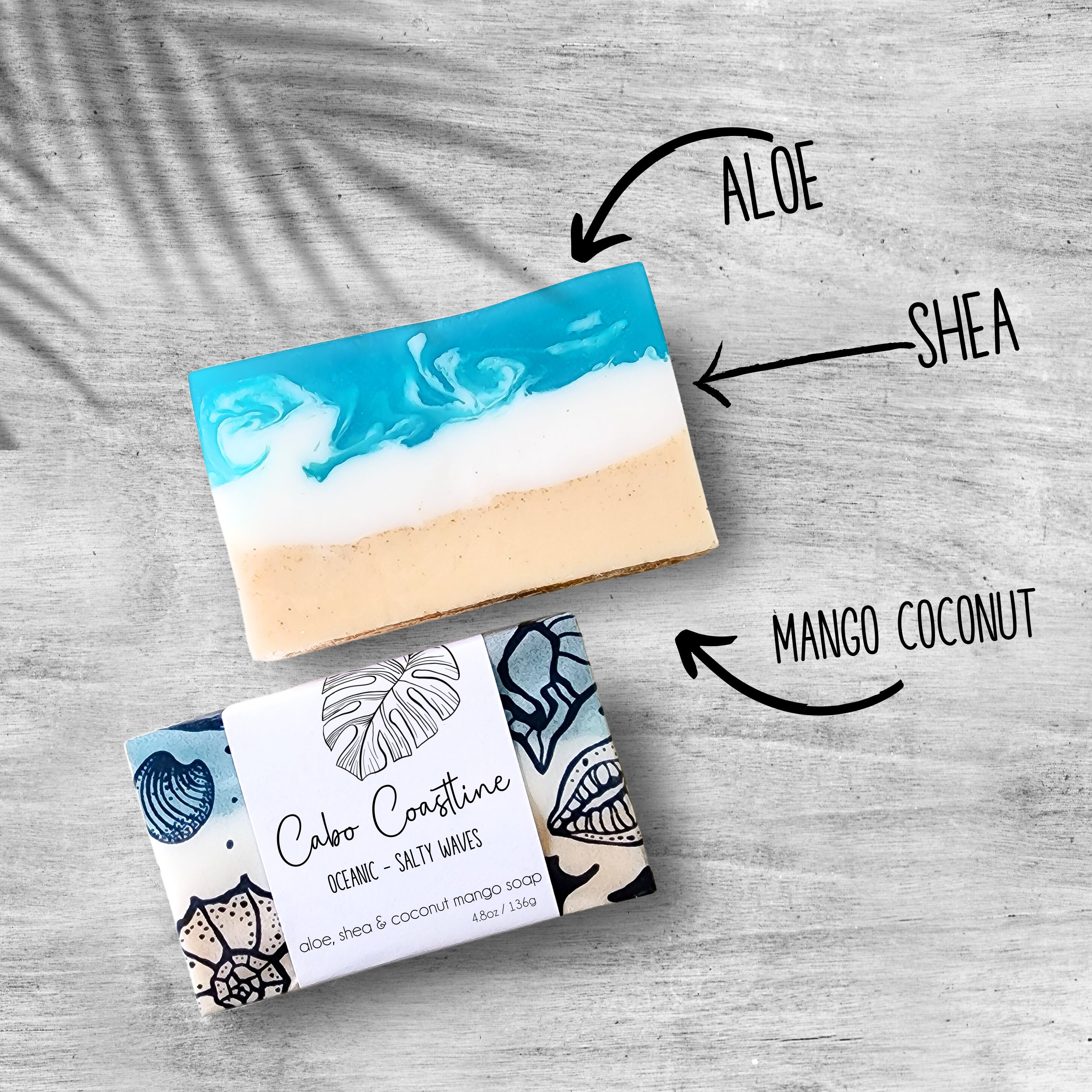 Hand crafted with care and expertise; our soap bar is carefully formulated to provide a luxurious bathing experience. The nourishing ingredients work in harmony to cleanse your skin, leaving it glowing with a natural radiance. Pamper yourself or surprise a loved one with the Cabo Coastline soap bar, and let the beach come alive in your shower. Experience paradise with every use.