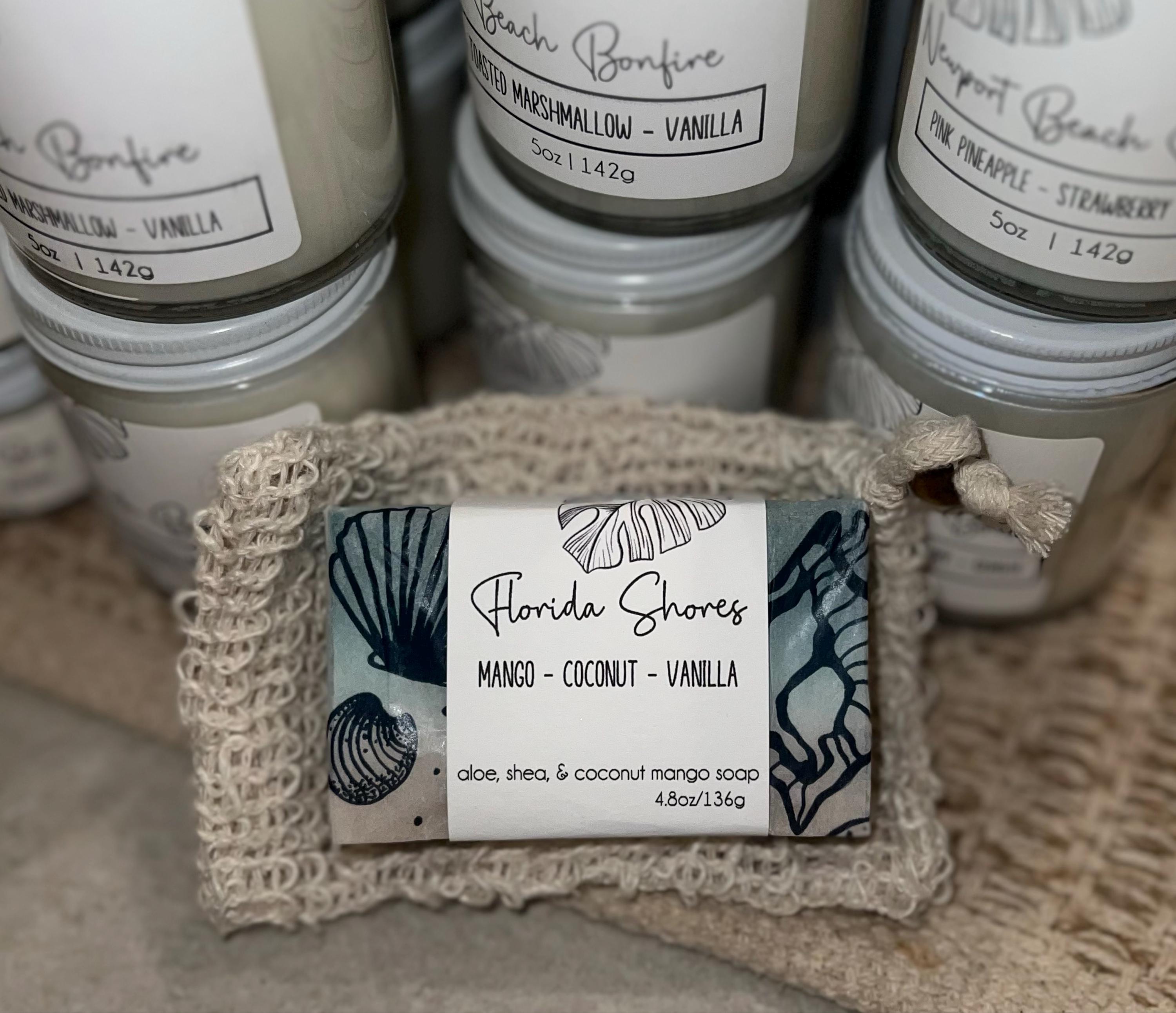 This beach themed soap bar is the perfect gift for a coastal wedding or a beach-loving friend or bridesmaid. Escape to the beautiful beaches of the Florida Shores with our coastal themed soap bar, infused with the invigorating essence of coconut, mango and vanilla