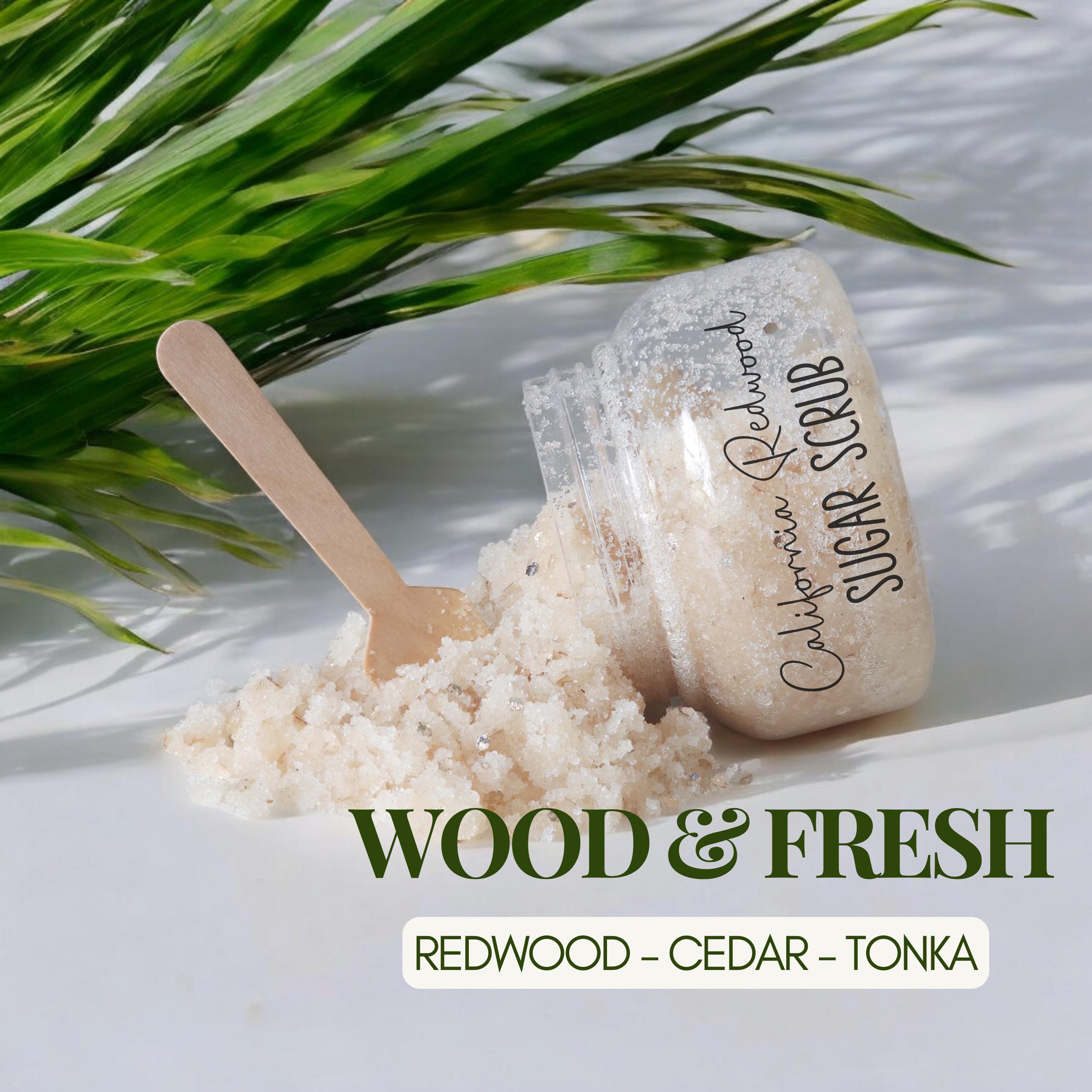 Nestled in the heart of California's ancient redwood forests, where the air is thick with the scent of redwood and the gentle rustle of towering giants, lies the inspiration behind our luxurious California Redwood Sugar Scrub.