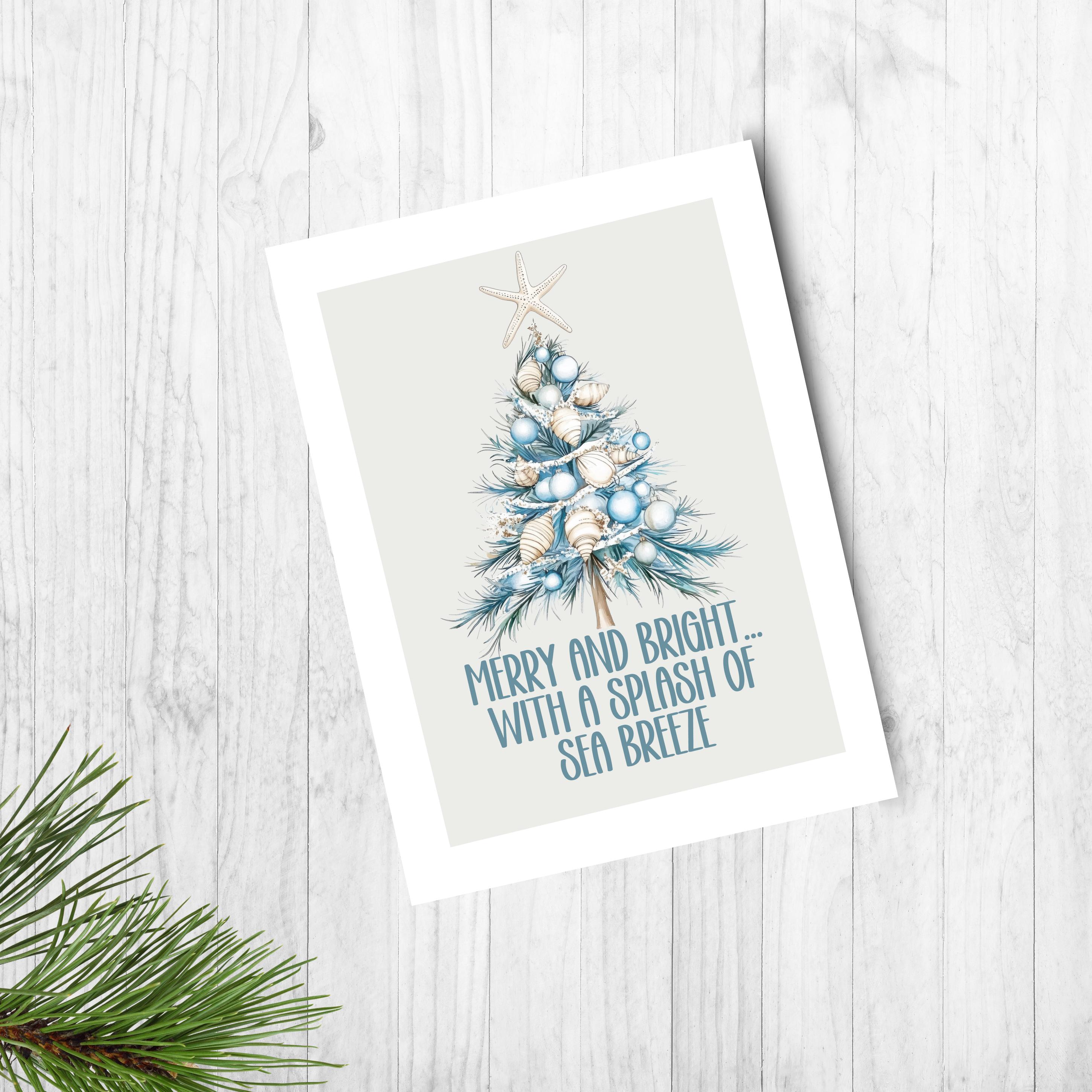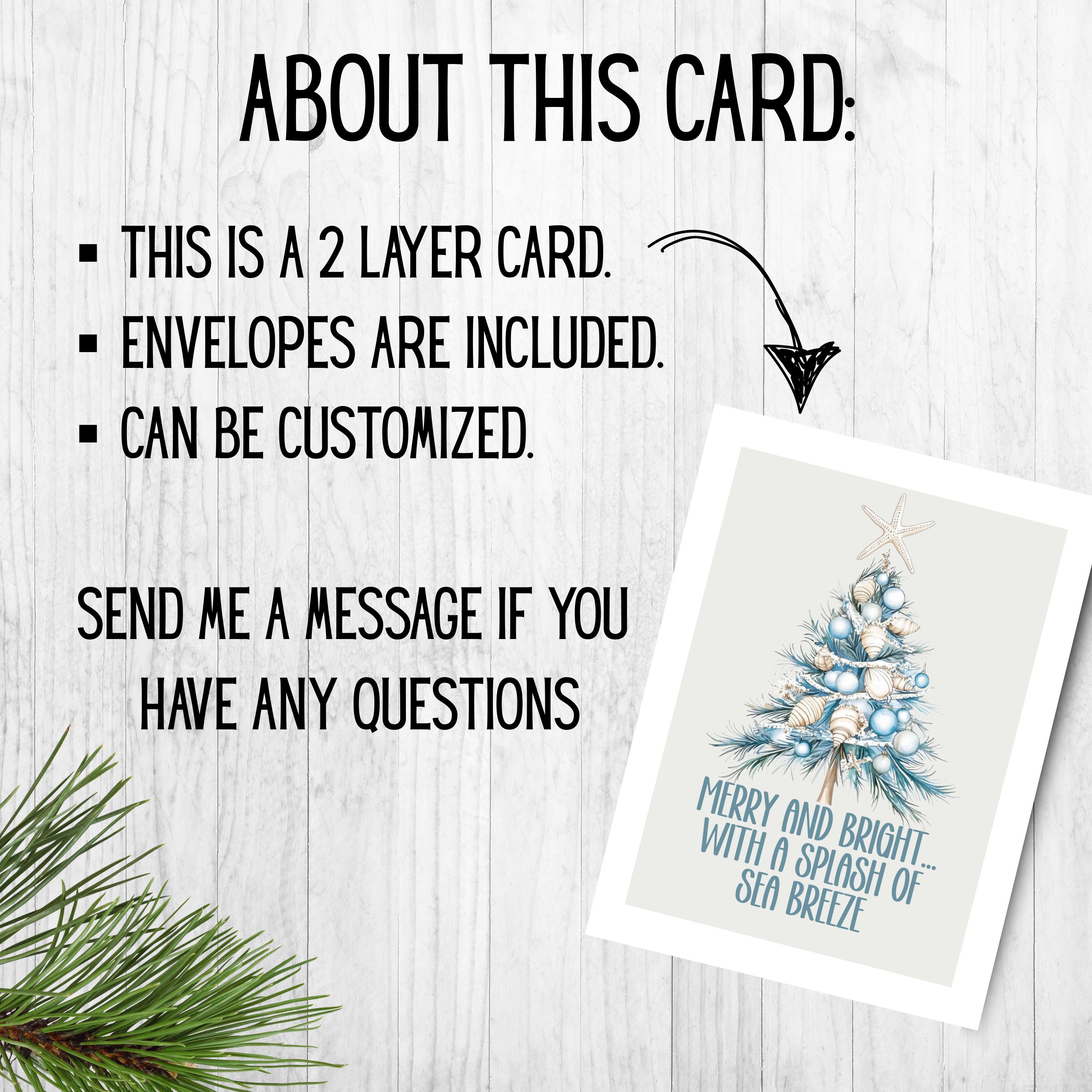 You can customize this cute aqua blue tree Christmas holiday greeting card set or purchase blank inside!