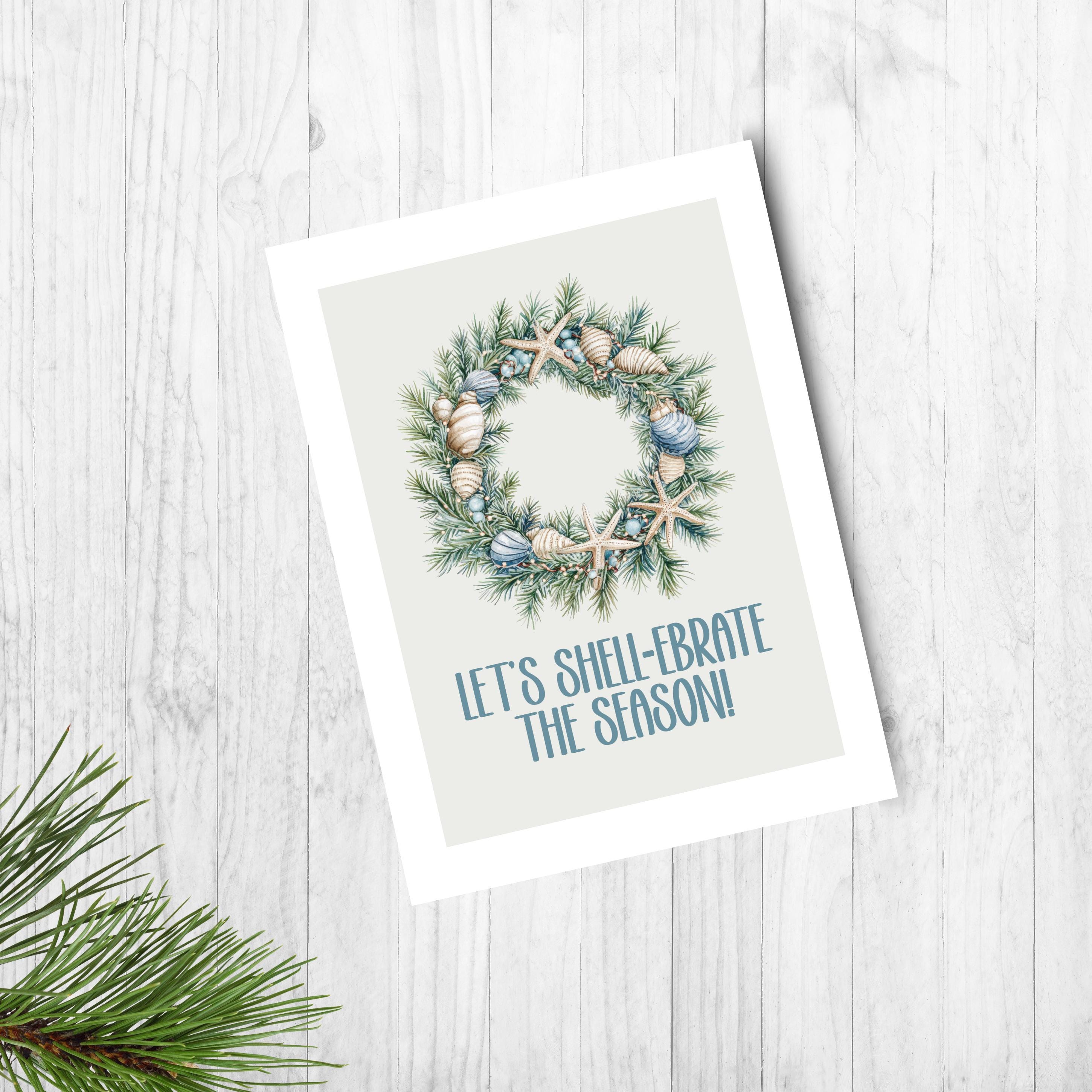 You can customize this cute blue Christmas wreath holiday greeting card set or purchase blank inside!
