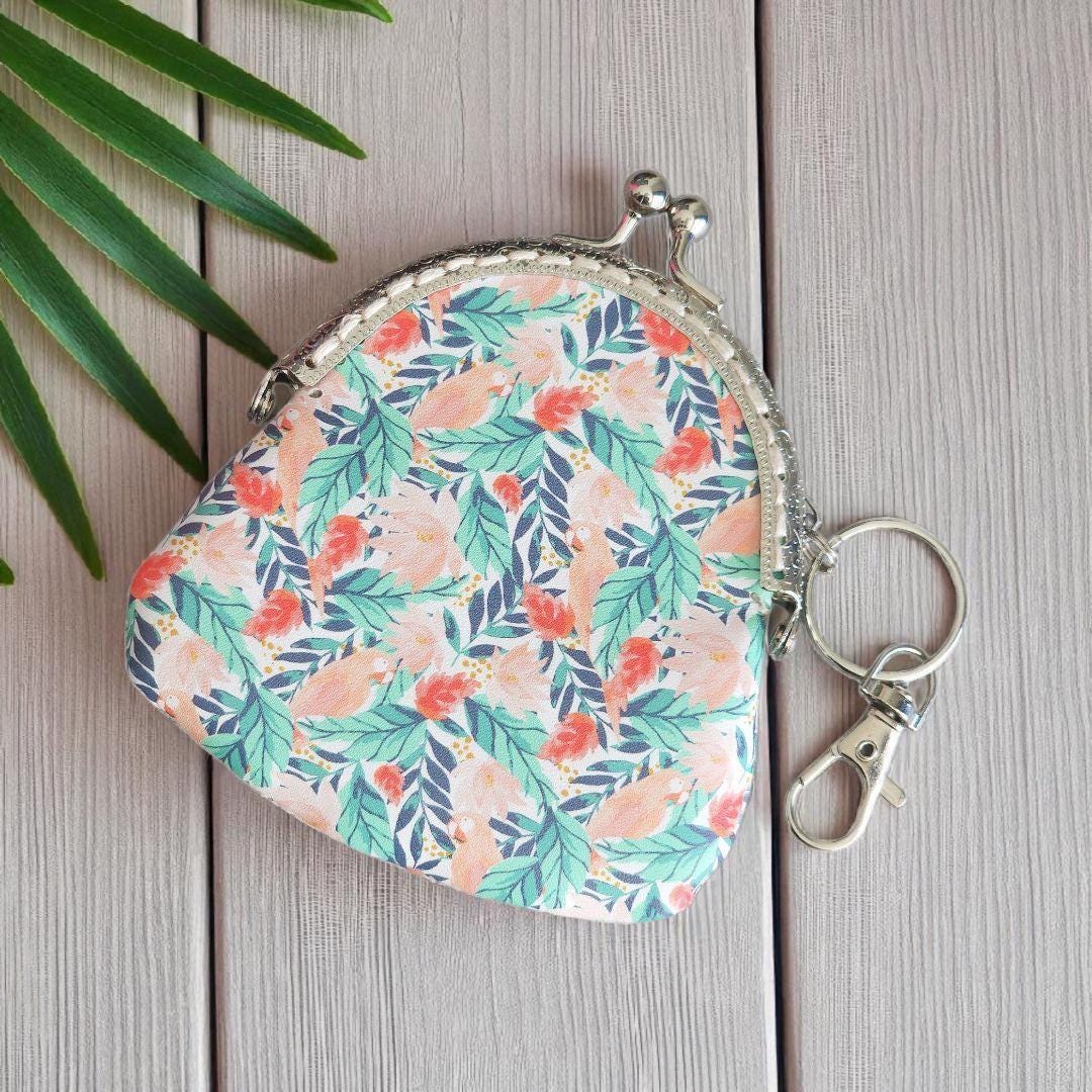 Say aloha to your new favorite mini essential! This charming kiss clasp coin purse features a playful, vintage-style tropical print in soft pinks and blue tones — complete with retro tropical style. It’s the perfect accessory to carry a bit of paradise with you wherever you go!