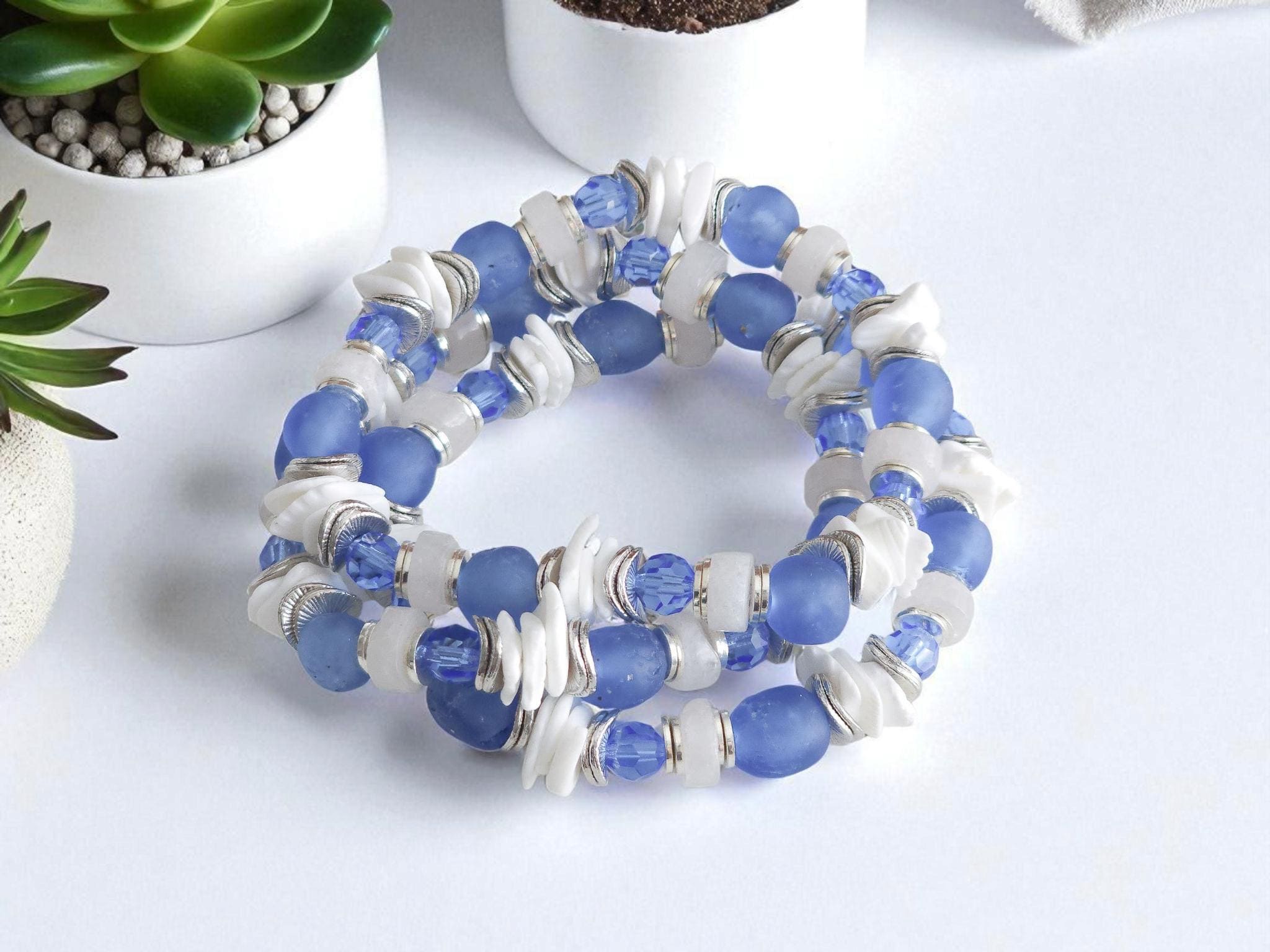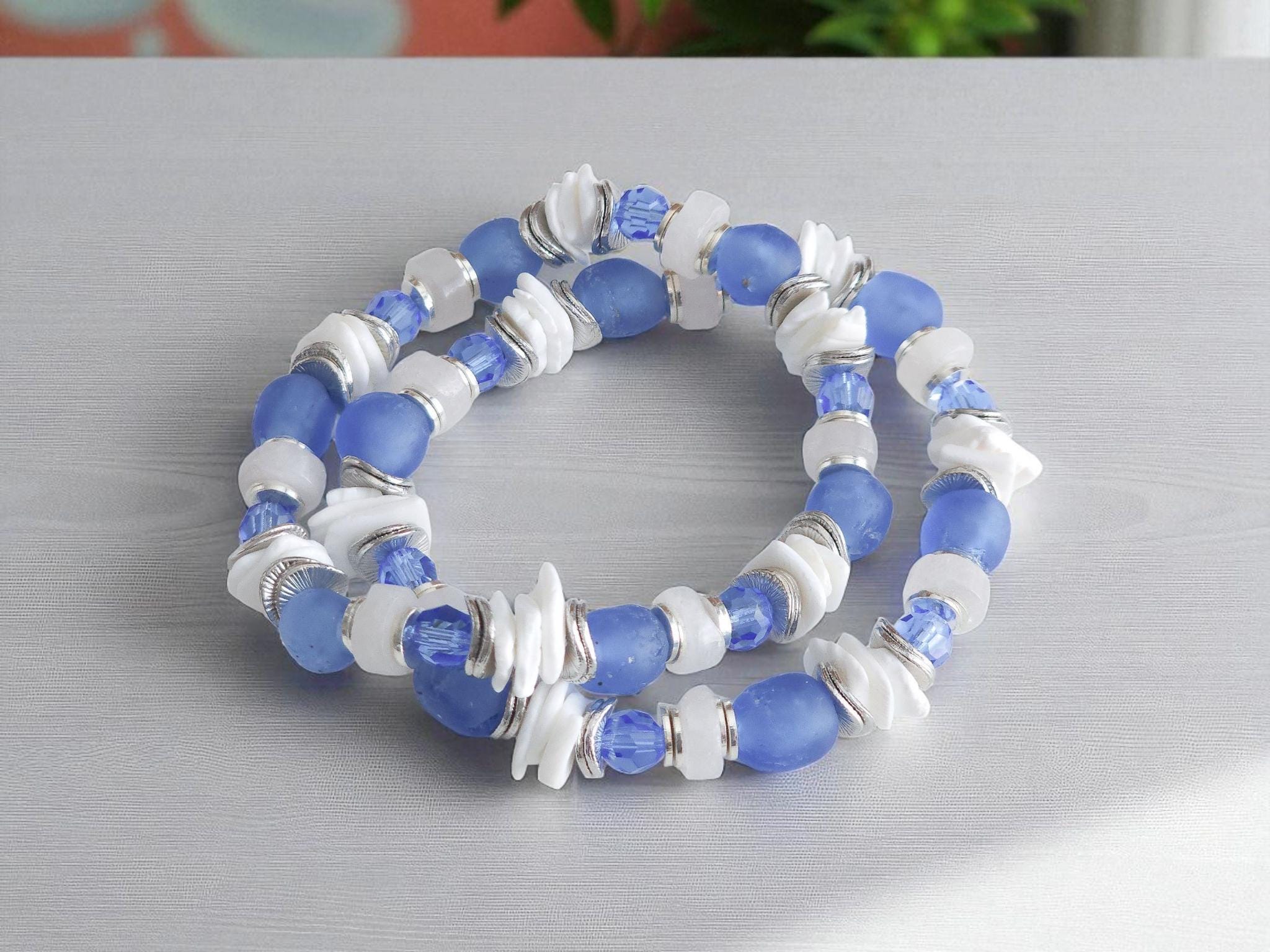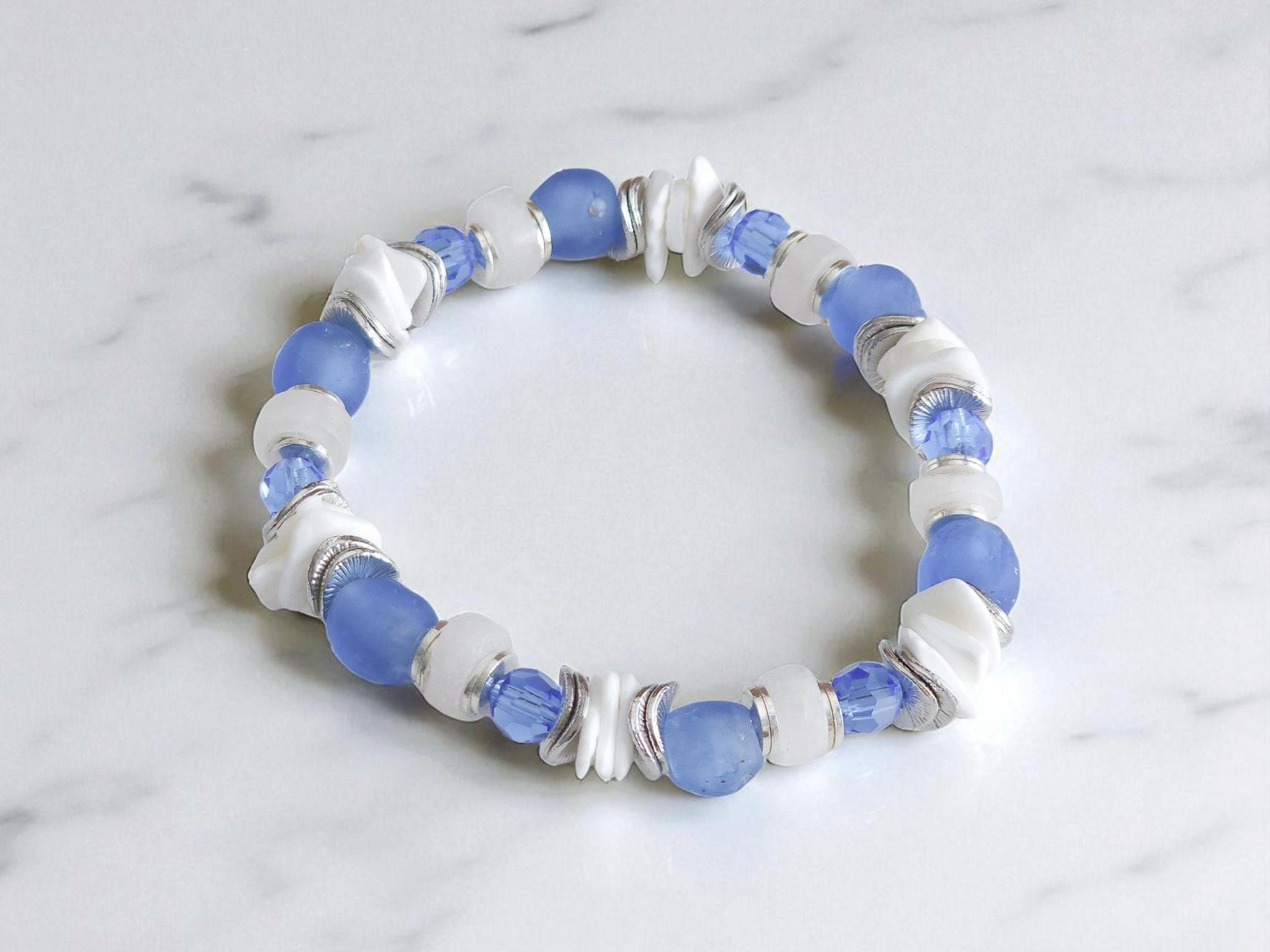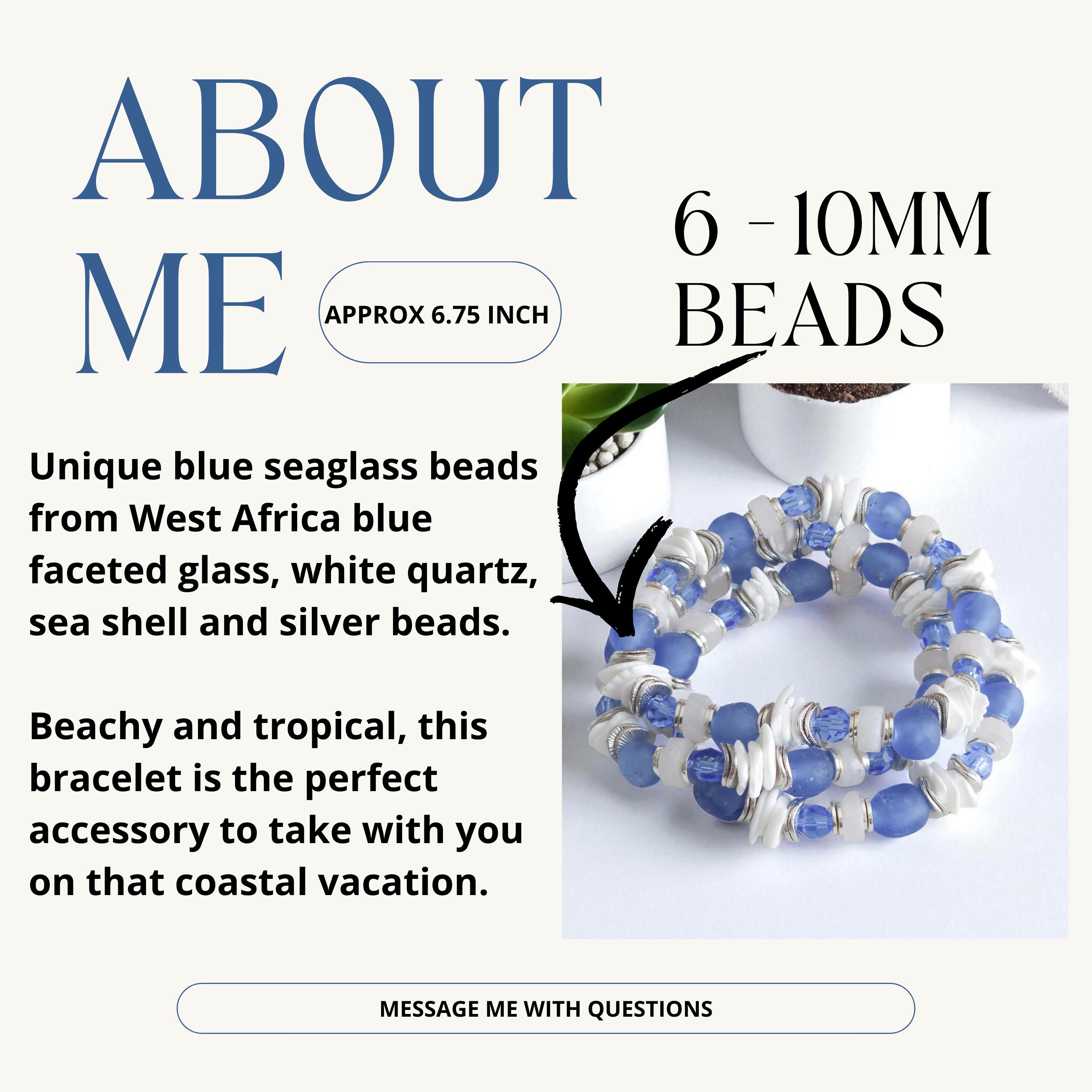 Handcrafted with meticulous care, this beach bracelet includes sea glass, shell, silver, blue crystal, and unique sea glass beads. Each element tells a story of the sea, from the shine of the silver to the sea glass beads, creating a unique piece that captures the essence of ocean treasures. The delicate silver accents add a touch of sophistication, complementing the natural beauty of the shell bead to perfection.