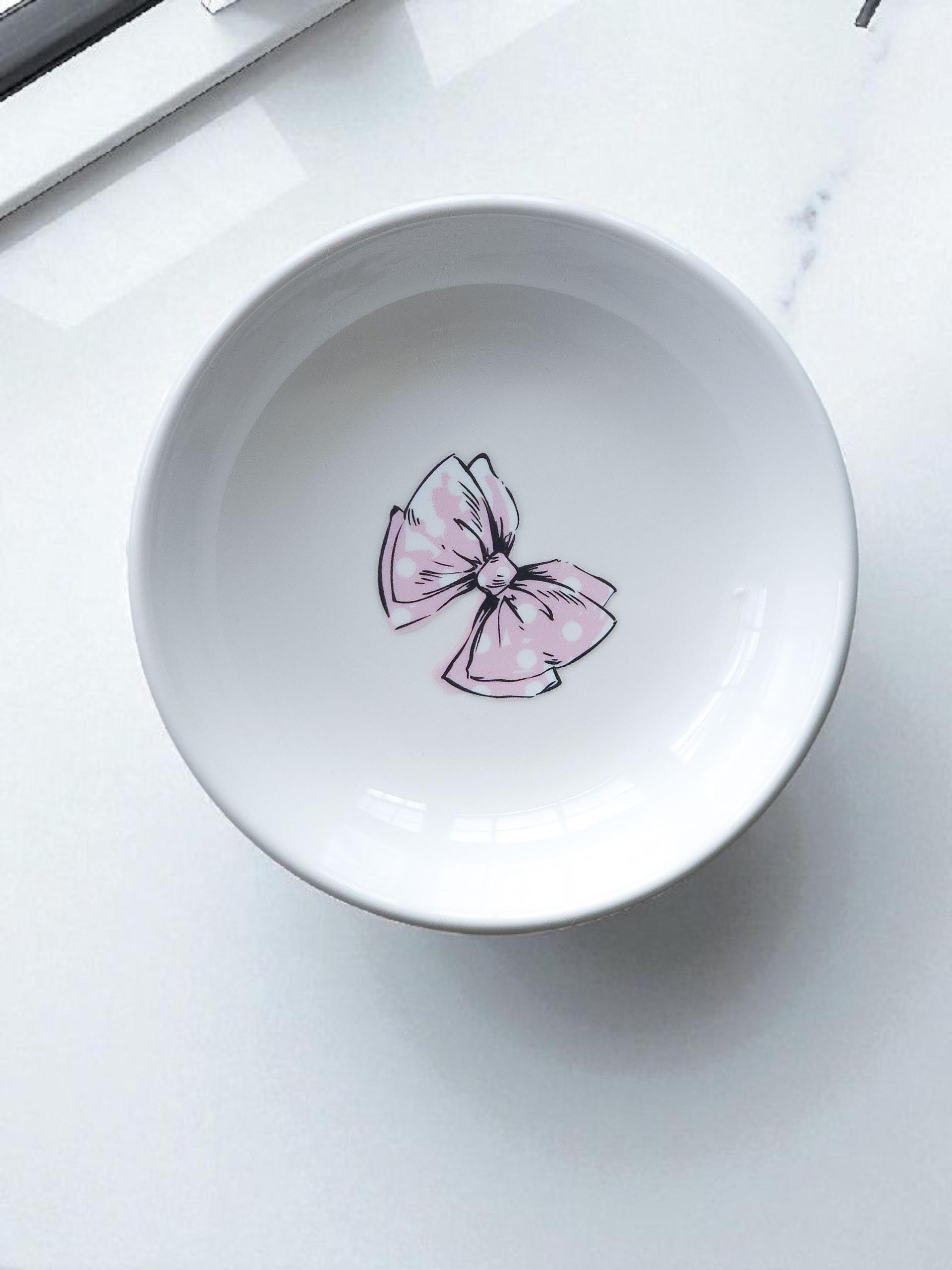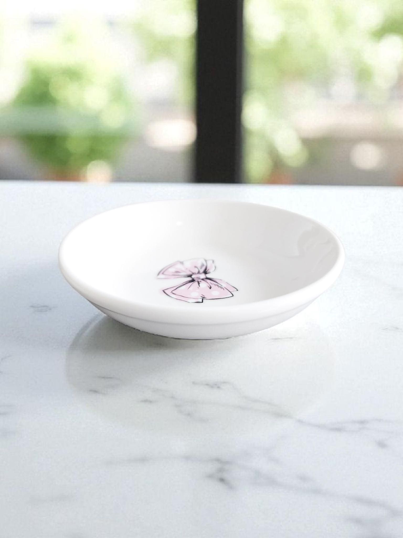 Add a splash of seaside charm to your vanity or nightstand with this handcrafted ceramic jewelry dish. Featuring a delicate coquette Nautical pink bow design applied using UV DTF, this 4-inch round tray is perfect for holding rings, earrings, or small treasures. The glossy white ceramic finish makes it a stylish and functional accent for any beach lover, coastal home, or nautical décor theme.