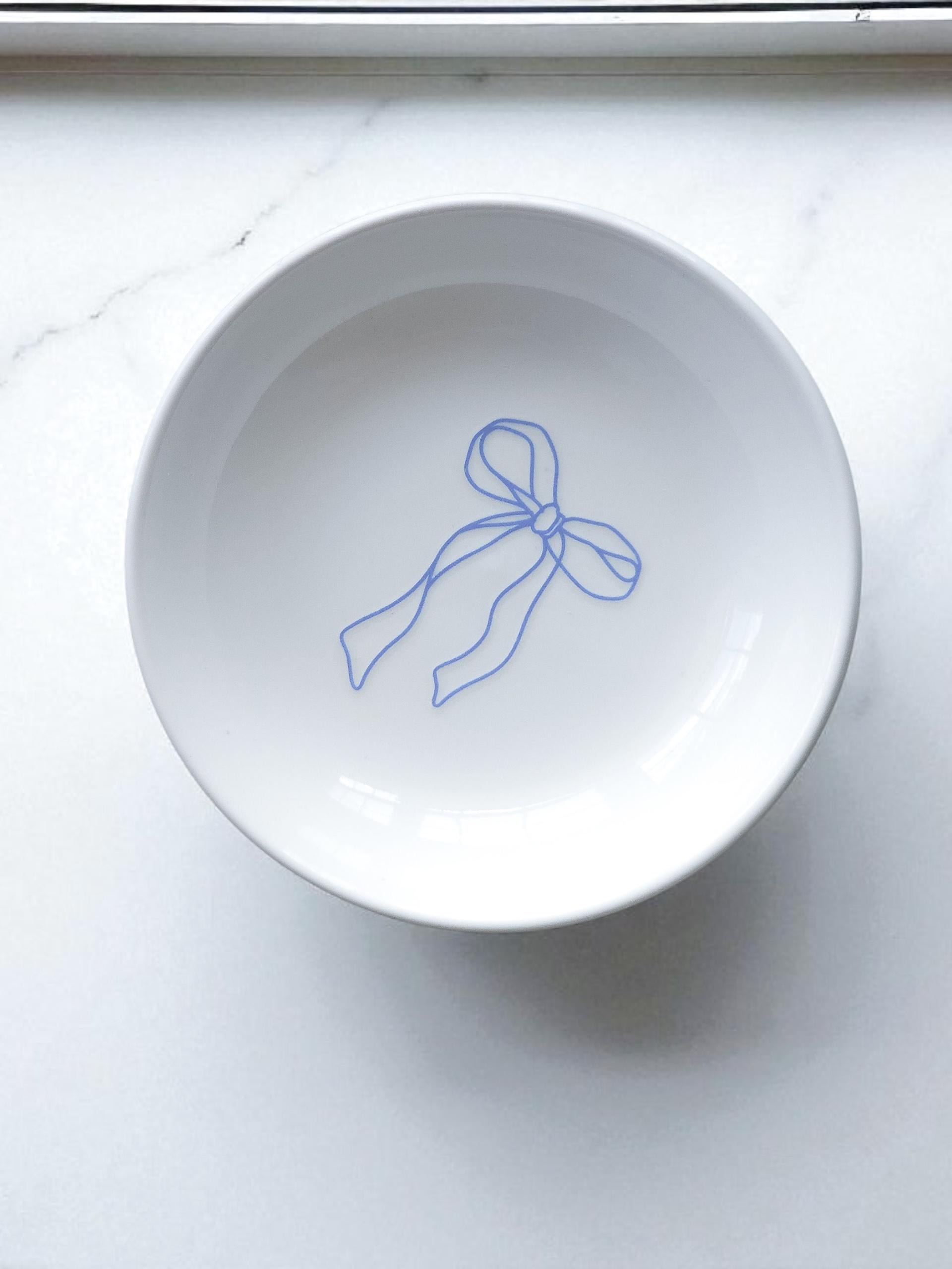 Add a splash of seaside charm to your vanity or nightstand with this handcrafted ceramic jewelry dish. Featuring a delicate blue coquette nautical blue design applied using UV DTF, this 4-inch round tray is perfect for holding rings, earrings, or small treasures. The glossy white ceramic finish makes it a stylish and functional accent for any beach lover, coastal home, or nautical décor theme.