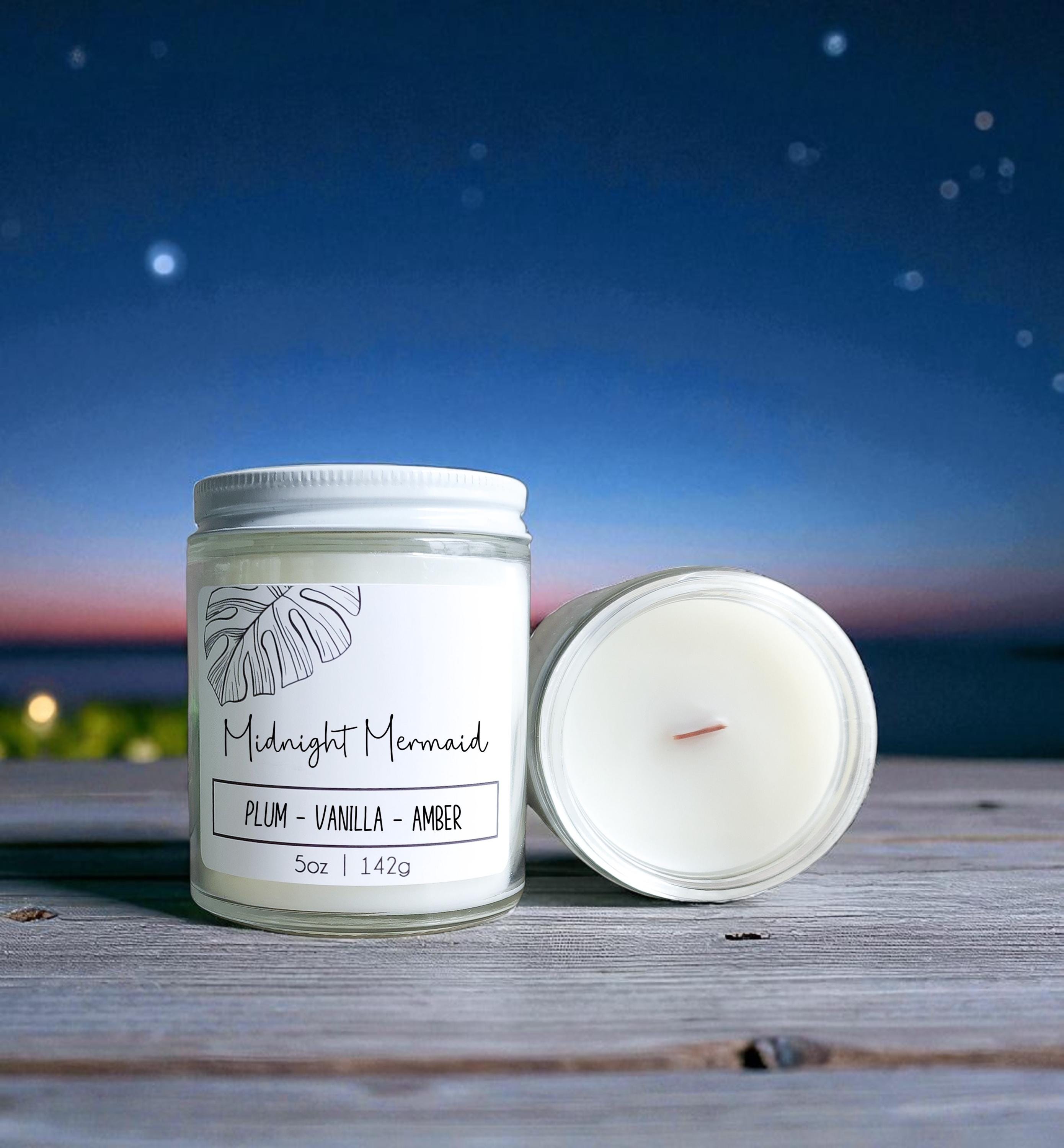 Our candles are custom blended scents that you can enjoy or give as a gift. This soy blend wax candle has a crackling wood wick. Simple metal screw lid style jar can fit into any home décor. Give one as a gift or keep for yourself. This is the perfect jar to reuse after you burn your candle! Use in the bathroom, on a nightstand, or on a shelf in the living room for added texture and design.